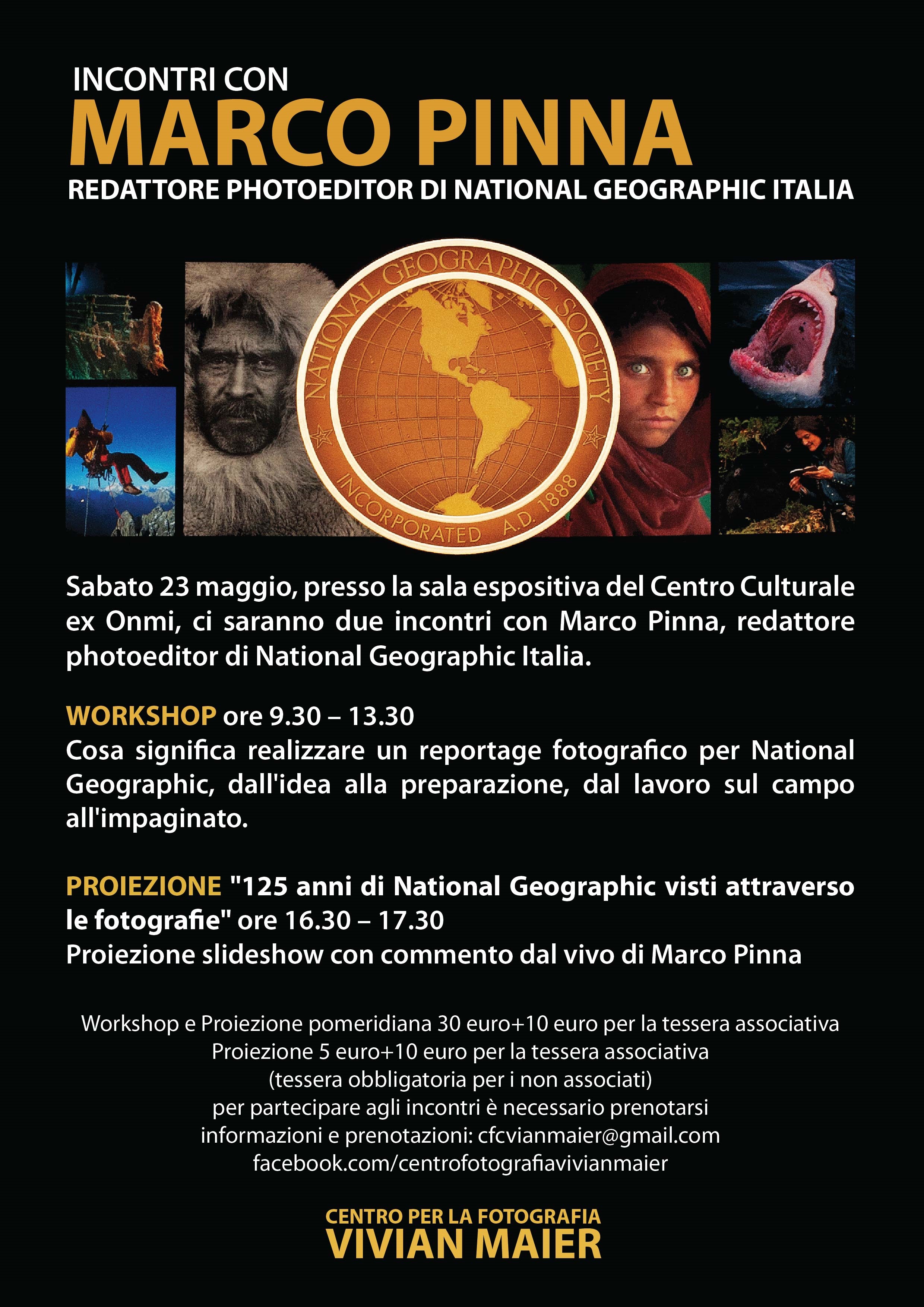CAMPOBASSO – Il 23 maggio il Centro per la Fotografia Vivian Maier ospiterà Marco Pinna, redattore photoeditor di National Geographic Italia. Per l’occasione sono previsti due incontri: un workshop (ore 9.30 – 13.30) su cosa significa realizzare un reportage fotografico per National Geographic, dall’idea alla preparazione, dal lavoro sul campo all’impaginato e una proiezione slideshow (ore 16.30 – 17.30), con commento dal vivo dello stesso Pinna, sui 125 anni di National Geographic visti attraverso le fotografie.