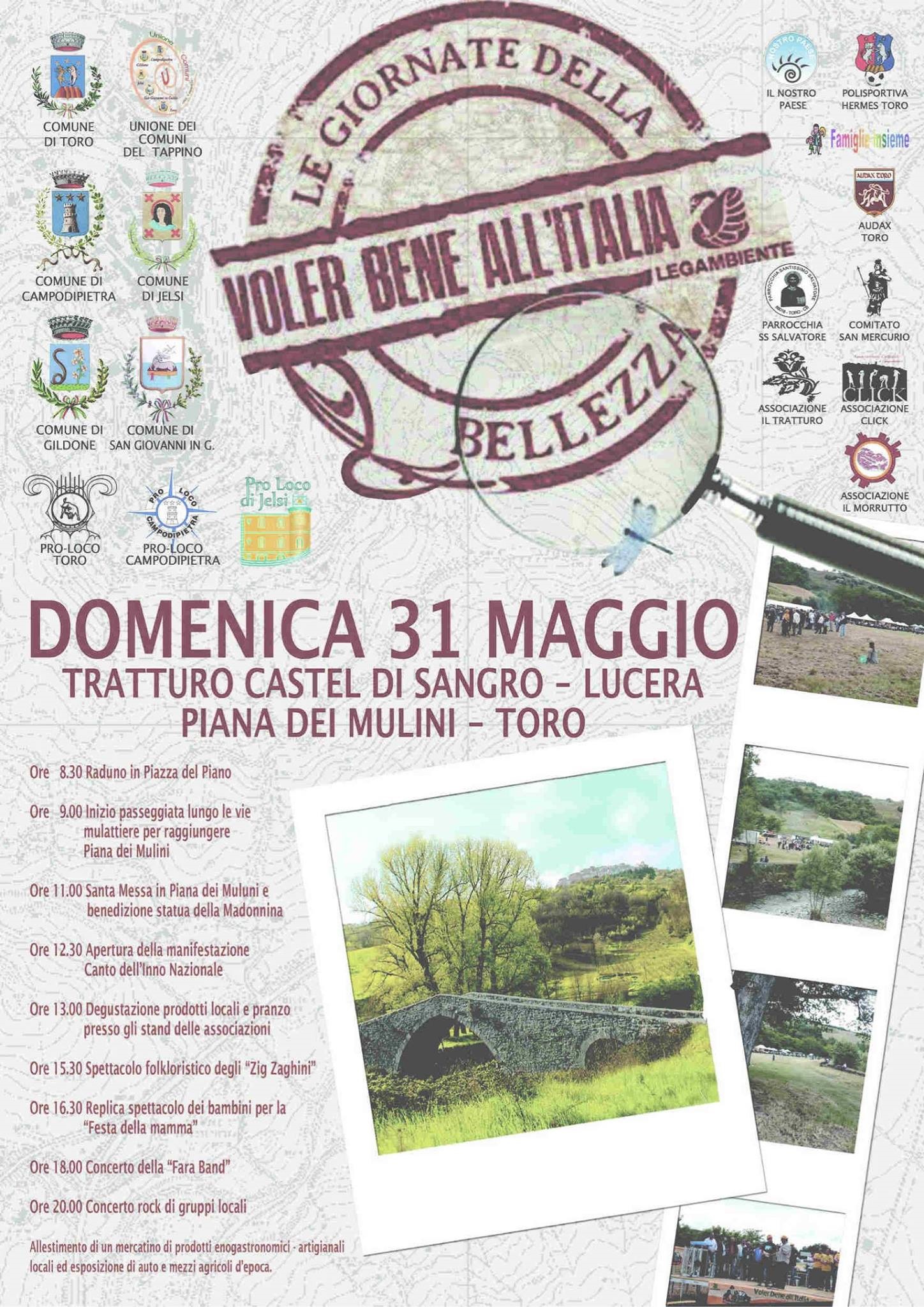 EVENTI – Anche quest’anno la Pro loco di Jelsi prenderà parte all’iniziativa di Legambiente “Voler bene all’Italia” che si terrà lungo il tratturo Castel di Sangro – Lucera in località Piana dei Mulini a Toro.