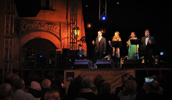 Sul palco il M° campano Gennaro Benvenuto al piano, i soprani Antonella Inno di Isernia e la giovanissima ed assai valida Federica D’Antonino di Pozzilli, il baritono Maurizio Esposito ed il tenore Ivan Lualdi, professionisti di Napoli, ottimamente presentati dal venafrano Gianni Di Chiaro. Prima parte brani lirici di Donizetti, Puccini e Verdi, quindi canzoni celebri italiane e straniere che hanno deliziato la vasta platea.