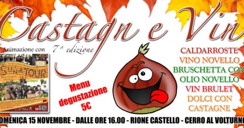 CERRO AL VOLTURNO – Degustazioni e buona musica: a Cerro al Volturno sono in corso gli ultimi preparativi in vista della settima edizione di “Castagn e Vin”, in programma domenica 15 novembre. Con la celebrazione del Patrocinio in onore della Madonna Assunta nel Rione del centro dell’Alto Volturno torna dunque l’appuntamento con manifestazione gastronomica, che vedrà l’esibizione dei Sunatour, gruppo folklorico /tradizionale abruzzese, che allieterà la giornata festosa con canti e balli nel caratteristico borgo ai piedi del Castello Pandone. Si potranno gustare e degustare: caldarroste, vino novello, bruschetta con olio novello, vin brulet, dolci a base di castagne. Appuntamento a partire dalle ore 16.00 per passare una giornata in compagnia presso Piazza Santa Maria
