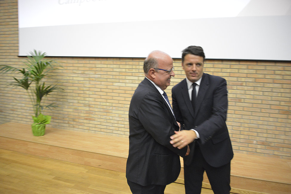 CAMPOBASSO – Mezza giornata piena piena per il Premier Matteo Renzi. In Molise tra emozioni suggestioni e tanta meraviglia per una terra sconosciuta come il Molise. Dal primo pomeriggio con la visita a San Giuliano di Puglia dove ha voluto visitare il nuovo paese, rifatto con uno stile luminosamente liberty, il villaggio dei terremotati rimasto vuoto e dove ha condiviso per il futuro un’accoglienza diversa da quella dell’ospitalità a migranti come una casa per minori abbandonati, dove ha chiarito l’approvazione avvenuta in Parlamento dell’indennizzo alle famiglie che hanno perso i loro Gioielli migliori, bambini di otto e dieci anni, 14 anni fa e dove ha incontrato uno dei sopravvisuti al crollo della scuola Jovine, Pompeo Barbieri, ora diversamente abile causa quell’orribile disastro, pronto a prepararsi per i più grandi appuntamenti mondiali di categoria nel nuoto. Una visita che ancora a distanza di oltre un decennio provoca commozione dolore e rabbia che in qualche maniera ha fatto riflettere anche il Presidente del Consiglio accompagnato dal governatore Frattura dal vicepresidente Facciolla, dal sindaco Barbieri presente il sottosegretario di Stato De Vincenti. Poi l’arrivo un po’ in ritardo al pastificio La Molisana dove lo hanno atteso le maestranze, la proprietà. Qui ha ammirato la tradizione e l’arte di un’eccellenza locale in piedi da decenni e che senza dubbio mantiene l’orgoglio della regione nell’agroalimentare, ultimo baluardo di una tipicità quella della pasta che fino agli anni ’80 contava in Molise decine di pastifici. Renzi ha conversato con i Ferro, proprietari dell’industria campobassana, intrattenendosi brevemente anche con i lavoratori con i quali ha scambiato battute scherzose. Poi con molto ritardo sulla tabella organizzativa, l’arrivo nell’aula Magna dell’Università del Molise dove lo hanno atteso le massima autorità locali, militari e civili e ovviamente il padrone di casa il Magnifico Rettore Gianmaria Palmieri, il presidente della Regione Frattura che precedentemente lo ha accompagnato in volo in elicottero sui cieli del Molise.