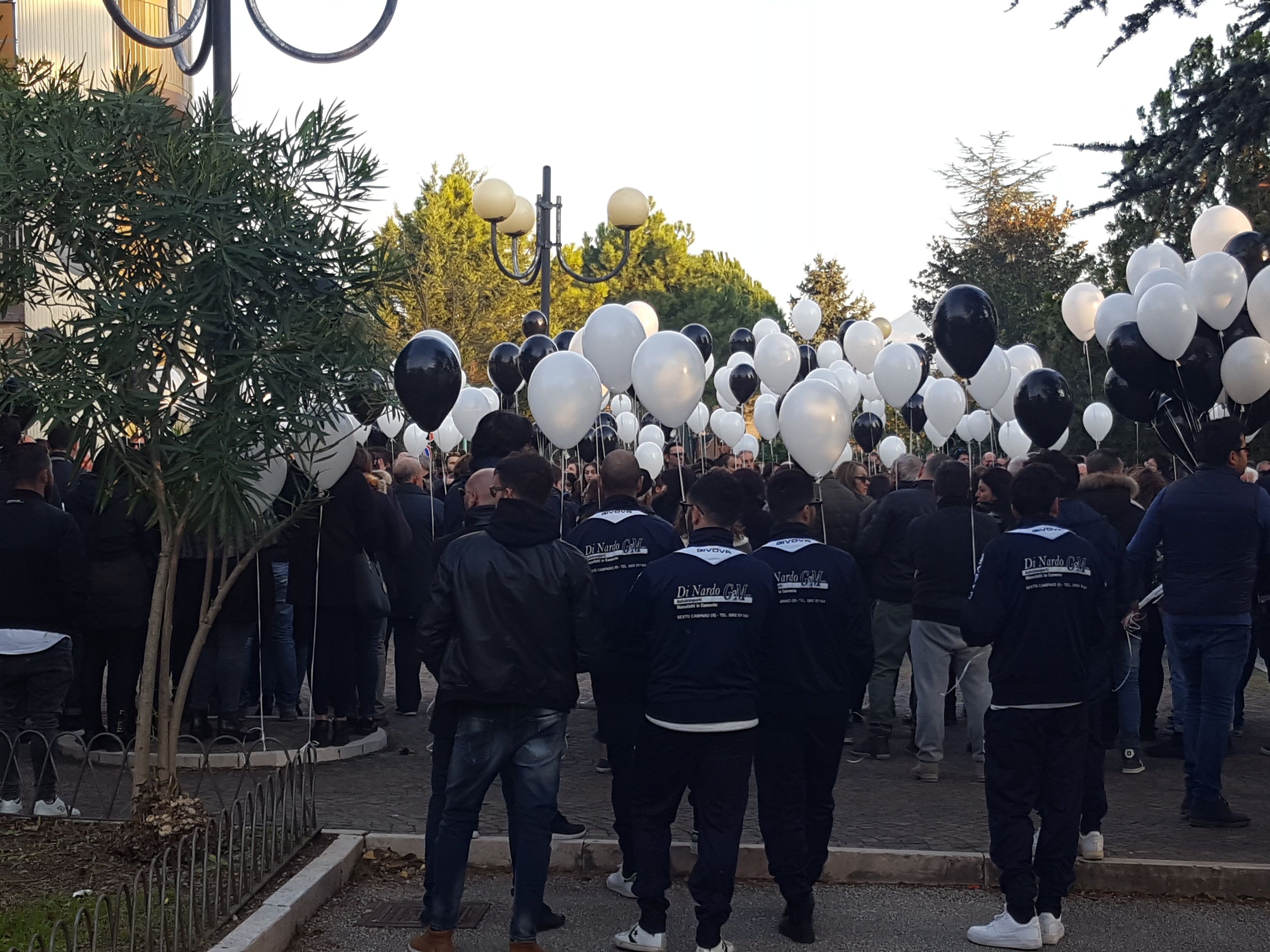 20161201_155234Incredulità e sgomento tra i presenti, ad interrompere il rispettoso silenzio della messa le lacrime inconsolabili dei suoi cari. Ad accompagnare fuori dall’edificio sacro  il feretro, portato a spalla dai suoi addolorati compagni di squadra, il volo in cielo di palloncini bianchi e neri (i colori sociali del Venafro e della Juventus, squadre di cui era tifoso). E’ stata la piccola Giulia, sua figlia, nella commozione generale, a dare il via a questo rituale, a seguire tutti gli altri, che si sono stretti a lei in quel gesto di speranza.
