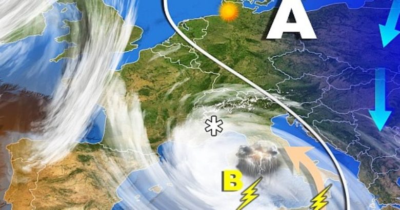 Il dominio anticiclonico sta defitinivamente lasciando spazio ad una circolazione ciclonica in risalita dalle coste nord-africane. Si stanno venendo a creare le condizioni per una svolta davvero imponente, in quanto la depressione afro-mediterranea salirà in cattedra rinvigorendosi sull’Italia, andando ad interagire con una massa d’aria più fredda, nel frattempo affluita da est, che esalterà non poco i contrasti. Di fatto, tutto il sistema perturbato troverà difficoltà a muoversi verso levante, per la presenza di un anticiclone di blocco sull’Europa Centro-Orientale. Ciò determinerà la persistenza del maltempo sulle medesime aree e sul Nord Italia avremo un mix meteo invernale proprio per l’influenza dell’aria più fredda nei bassi strati affluita da est.