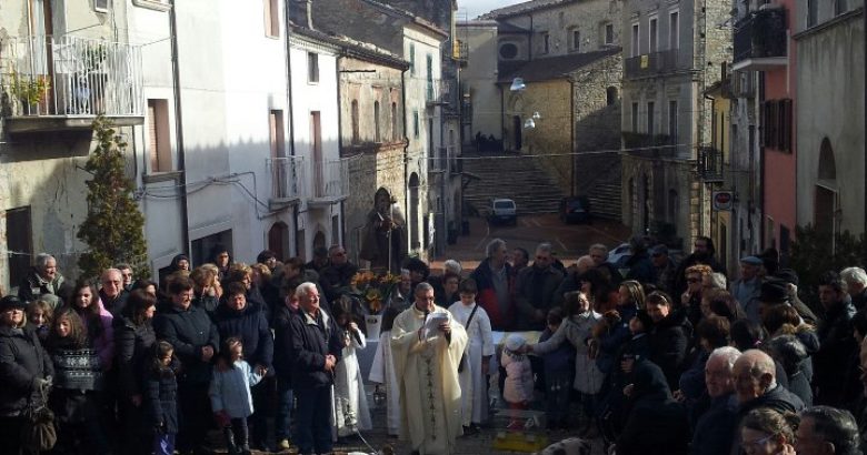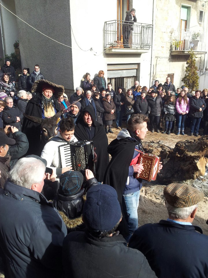 Il 17 gennaio la festa in onore di Sant’Antonio Abate continua nella mattinata. Qui dopo la funzione religiosa dedicata al Santo, sul Sagrato della Chiesa, verrà impartita la benedizione degli animali. Il grande falò acceso il giorno prima con la legna raccolta con la questua nei giorni precedenti la festa sarà il luogo di intrattenimento in attesa di un uomo a cavallo con salsicce e pezzi di lardo appesi al collo e un “friscolo” in testa, il quale, sosterrà davanti al grande fuoco e annuncerà l’imminente Carnevale.