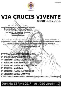 Domenica 2 aprile 2017 è in programma la XXXI edizione della “Via Crucis Vivente” organizzata dal gruppo scout A.G.E.S.C.I. Venafro 4.