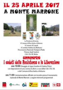 Comune di Rocchetta al Volturno, il Comitato Antifascista Molisano, l’Associazione Nazionale Partigiani d’Italia e l’Unione degli Studenti, commemorano, domani 25 aprile, presso il monumento di Monte Marrone, il 73° anniversario dei caduti della Resistenza e la Liberazione dell’Italia dal fascismo e dal nazismo.