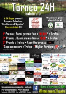 ROCCARAVINDOLA – Per la prima volta in Molise, presso il campetto polivalente ‘don Vincenzo D’Agostino’ di Roccaravindola, andrà in scena un Torneo di calcio a 5, 24h.