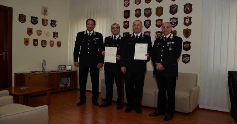 ISERNIA – Presso il Comando Provinciale Carabinieri di Isernia, il Comandante Provinciale Tenente Colonnello Marco Cuccuini, ha consegnato una lettera di vivo apprezzamento del Comandante della Legione Carabinieri Abruzzo e Molise, Generale di Brigata Michele Sirimarco, conferita al Maresciallo Capo, Domenico Autenzio e all’Appuntato Domenico Piscitelli, entrambi in servizio presso la Stazione Carabinieri di Frosolone, per il provvidenziale intervento che consentiva lo scorso primo giugno, di trarre in arresto un soggetto in preda a grave stato d’ira che armato di coltello si stava avventando contro la moglie, già vittima da tempo di comportamenti vessatori e violenti, grazie al quale sono state evitate conseguenze ben più gravi, riscuotendo il plauso della popolazione locale.