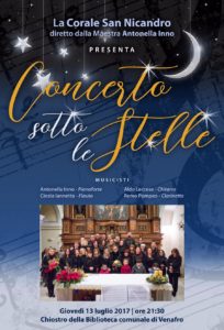 VENAFRO – In segno di rispetto per la tragica scomparsa di Amerigo Iannacone, docente delle Superiori e scrittore, investito nella prima mattinata odierna mentre attraversava la Colonia Giulia a Venafro nei pressi dell’Ospedale SS. Rosario, è stato rinviato il “Concerto sotto le stelle” della Corale di San Nicandro, che si sarebbe dovuto tenere nella serata di giovedì 13 luglio nel Chiostro agostiniano della Biblioteca Comunale venafrana.