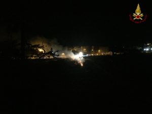 Quattro squadre dei Vigili del Fuoco del Comando impegnate fino all’una di notte con due autobotti che effettuavano la spola tra l’incendio e l’approvvigionamento dell’acqua.