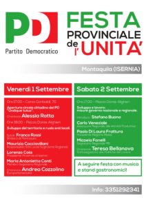 CAMPOBASSO – La Festa dell’Unità di Montaquila in programma oggi e domani è un momento di riflessione sul Pd e sul centrosinistra.