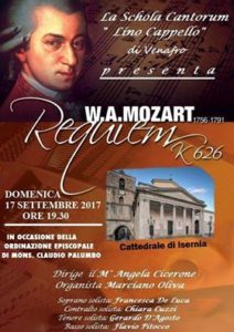 Mancano pochi giorni al “Requiem Kv 626” che la Schola Cantorum “Lino Cappello” della Parrocchia dei Ss. Martino e Nicola di Venafro eseguirà in occasione dell’ordinazione episcopale di Mons. Claudio Palumbo.