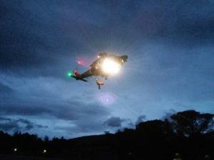 Alle 22:00 un HH 139 dell’Aeronautica Militare proveniente da Pratica di Mare, atterrava sull’elisuperfice di Campochiaro prendendo a bordo due tecnici del CNSAS, materiale medico di primo soccorso e una barella verricellabile in dotazione al Soccorso Alpino.