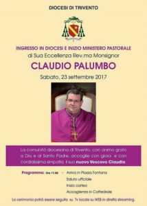 TRIVENTO – Sabato 23 settembre, Mons. Claudio Palumbo farà ufficialmente il suo ingresso a Trivento dove inizierà il Ministero Pastorale, per l’occasione la comunità diocesana si è preparata ad accogliere con gioia il nuovo Vescovo.