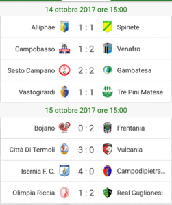 Negli altri due incontri domenicali, il Guglionesi vince a Riccia per 2-1 e si avvicina alla zona play-off dopo un inizio di stagione stentato, mentre la Frentania vince 2-0 a Bojano e risale la classifica.