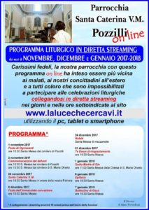 CHIESA – Da domani, 1 novembre, fino a gennaio 2018, la Parrocchia Santa Caterina V.M. di Pozzilli trasmetterà le celebrazioni liturgiche online.