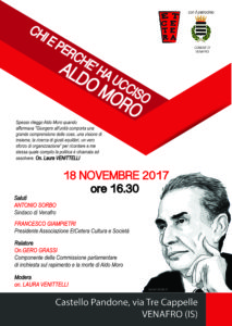 All’incontro parteciperanno il sindaco di Venafro, Antonio Sorbo, il presidente dell’Associazione EtCetera, Francesco Giampietri, e l’on. Laura Venittelli. Ospite d’onore, Gero Grassi, promotore e membro della Commissione parlamentare d’inchiesta sul caso Moro che, attraverso un’instancabile attività di ricerca, si sta battendo per la libertà.