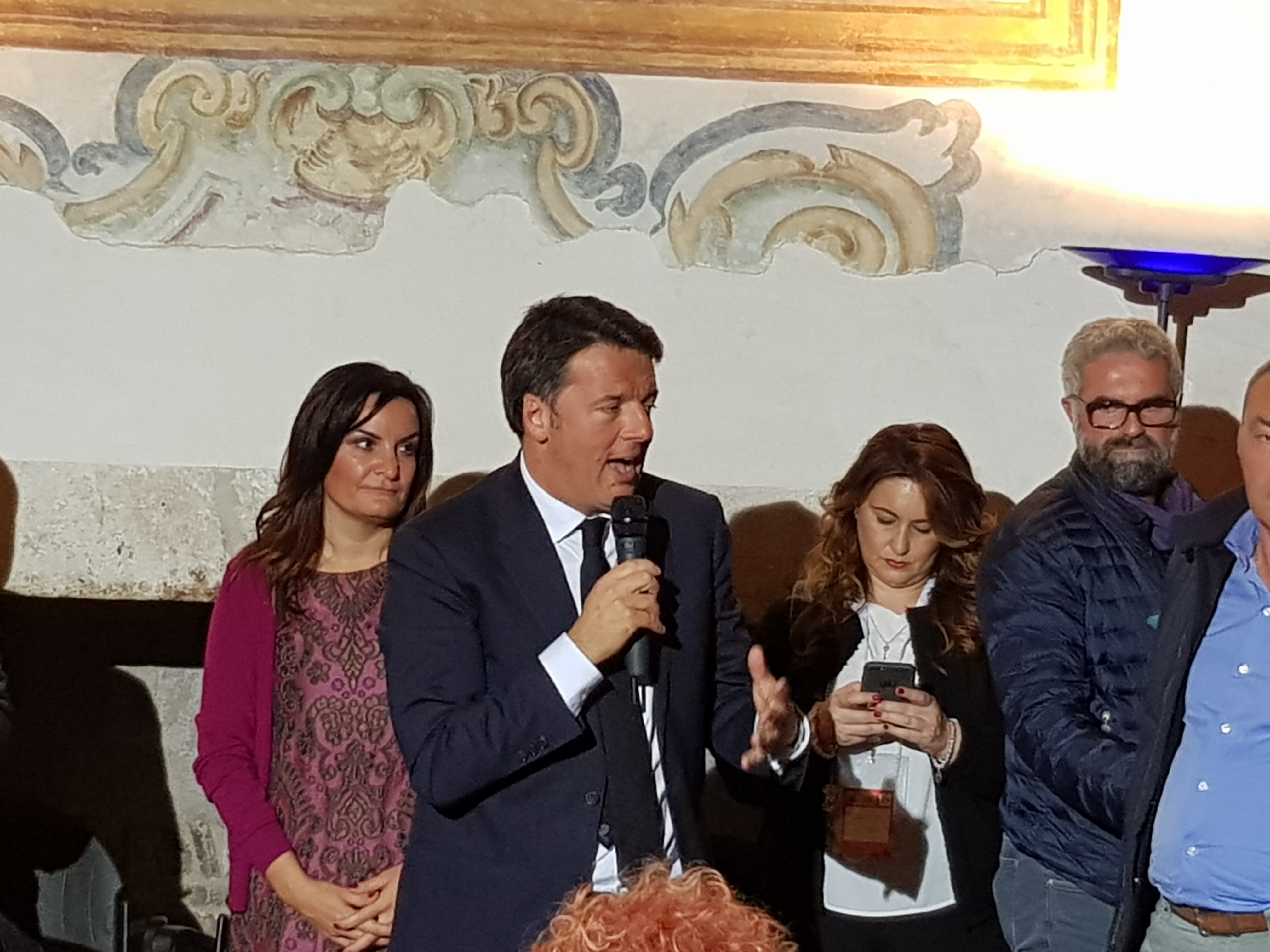 Renzi si è recato presso il Castello Pandone, dove è stato accolto da una sala gremita di gente, per fermarsi ad ascoltare i cittadini della provincia di Isernia e toccare con mano il frutto della ripresa economica della regione.