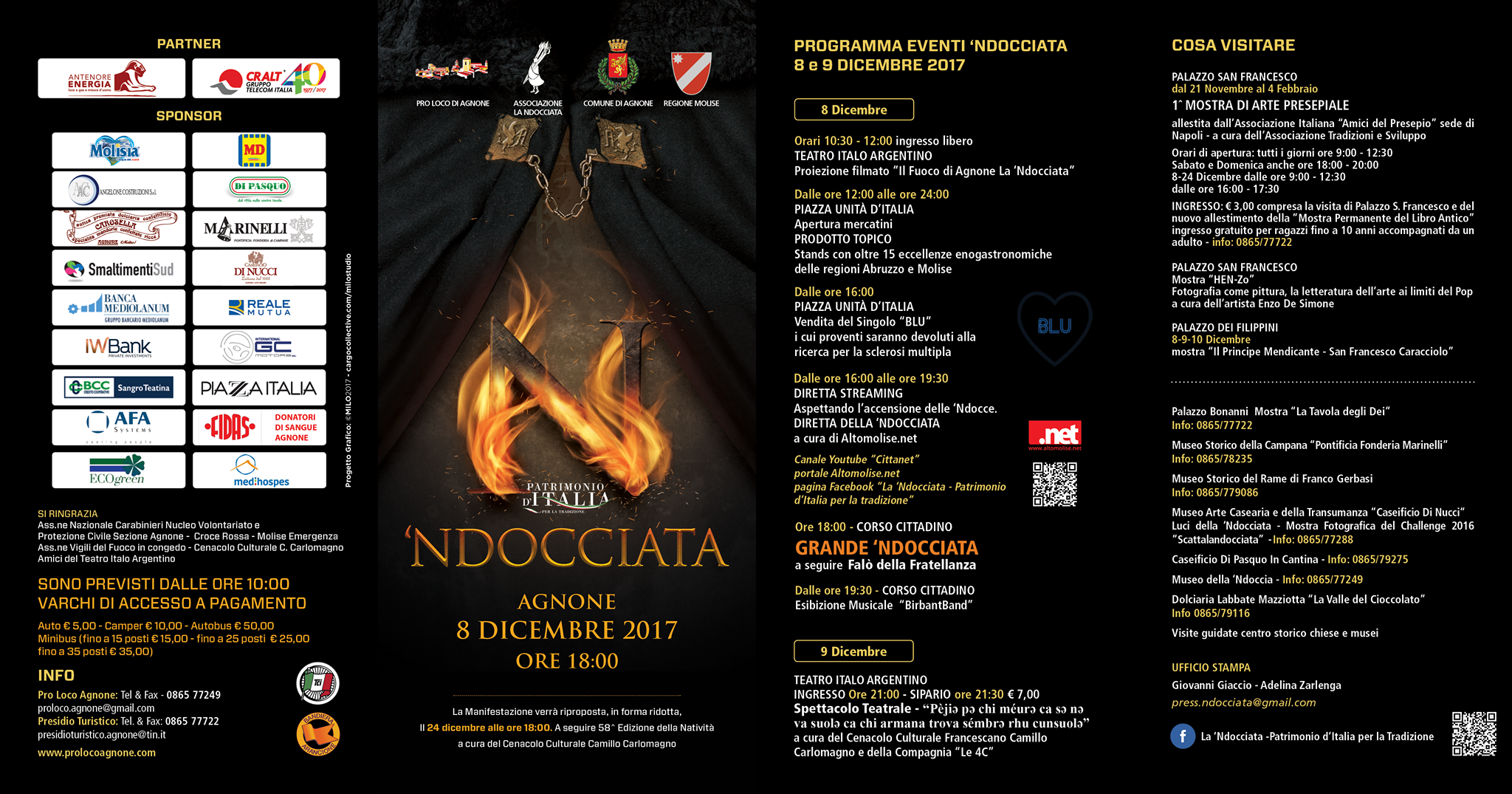 “La ‘Ndocciata deve diventare non solo veicolo di turismo, ma anche di economia locale – spiega il sindaco di Agnone Lorenzo Marcovecchio -. Bisogna lavorare affinché possa autofinanziarsi e si possa passare dal taglio del volontariato ad un taglio più professionale”. Il consiglio per i visitatori è di arrivare ad Agnone già dal mattino, per poter godere al meglio della manifestazione.