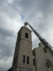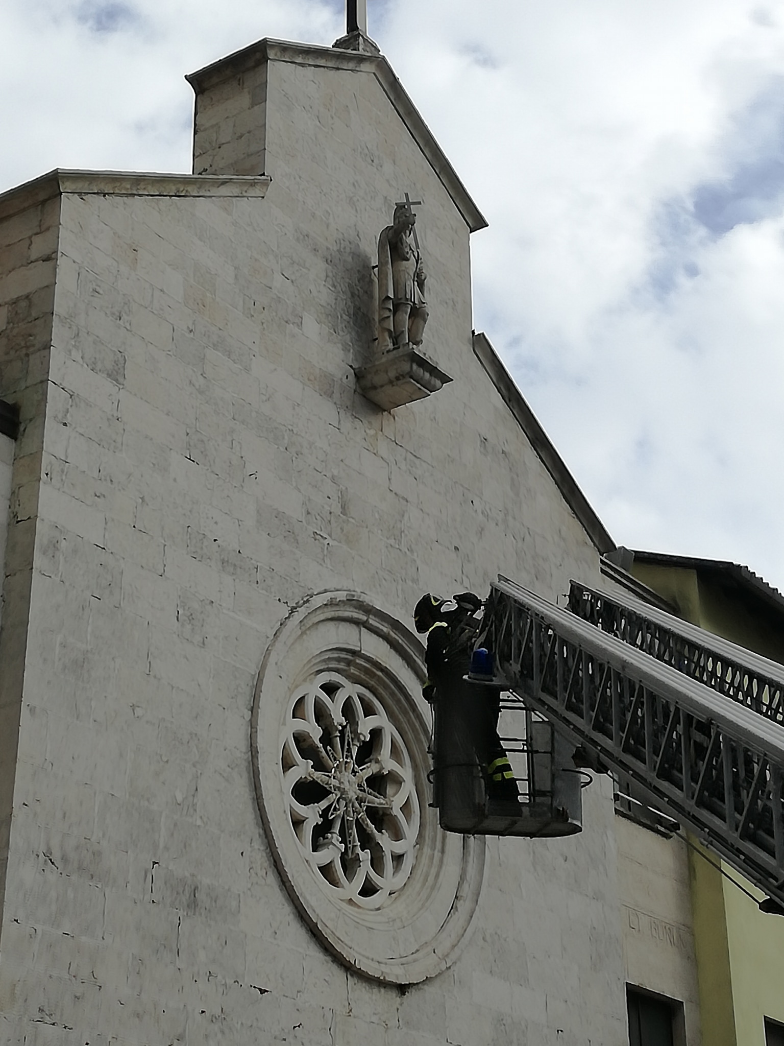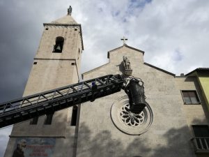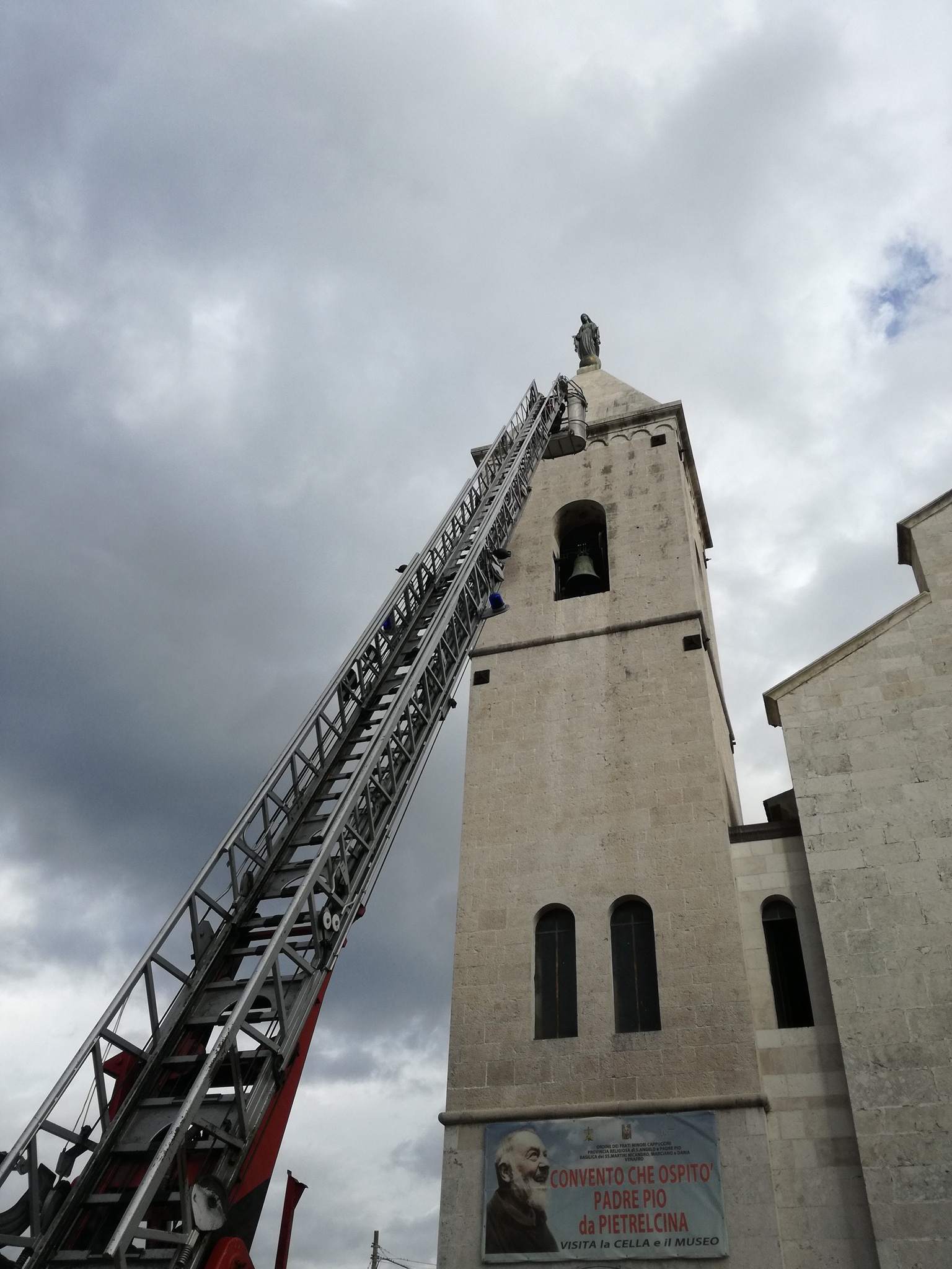 Intorno alle 11,30 di stamattina, i vigili del fuoco del Distaccamento volontario di Venafro, con la collaborazione dei colleghi di Isernia, dotati di una autoscala, hanno deposto, davanti agli occhi di curiosi e fedeli, l’omaggio alla Vergine Maria.