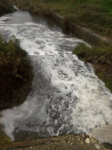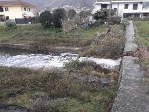 Stamattina le acque del torrente apparivano ricoperte da coltre di schiuma biancastra che galleggiava sulle acque del rivolo. Uno “spettacolo” diventato solito, ormai.