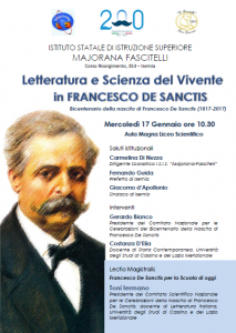 EVENTO – Il Majorana-Fascitelli ricorda la figura di Francesco De Sanctis con il convegno “Letteratura e Scienza del Vivente in Francesco De Sanctis”, al quale interverranno Toni Iermano, Gerardo Bianco e Costanza D’Elia.
