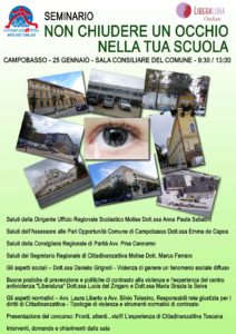 EVENTO – Nuovo appuntamento con il seminario “Non chiudere un occhio nella tua scuola”, organizzato da Cittadinanzattiva Molise Onlus e Liberaluna Onlus.