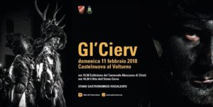 Qualche km più in là, sempre ai piedi delle Mainarde, a Castelnuovo al Volturno si potrà assistere al famoso rito dell’Uomo Cervo, meglio conosciuto come “Gl’ Cierv”. Nella piazzetta del paese, alle ore 16, si terrà l’esibizione del Carnevale Abruzzese di Chieti, a seguire, alle 18, l’antica rappresentazione carnevalesca molisana. I tanti spettatori e gli abitanti del paese vengono coinvolti nella pantomima dalle misteriose origini che rappresenta la violenza della natura.