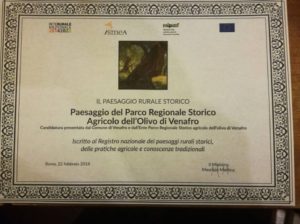 Un riconoscimento molto importante, anche in virtù del fatto che Venafro è il primo territorio molisano ad essere iscritto nel registro. Dopo una procedura durata oltre due anni, durante i quali una commissione tecnica istituita presso l’Osservatorio del Ministero ha valutato le varie caratteristiche del Parco dell’Olivo.
