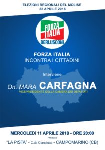 CAMPOBASSO – L’onorevole di Forza Italia Mara Carfagna, vicepresidente della Camera, incontrerà i cittadini molisani a Campomarino.