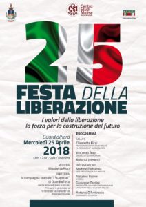 17 presso la Sala Conedera per il convegno “I valori della liberazione la forza per la costruzione del futuro”. Presso il comune di Toro la manifestazione avrà inizio alle 10.30 in piazza Trotta, proseguirà poi con la deposizione della corona di fiori al monumento ai caduti e il ricordo della lotta per la liberazione. Infine, a Campobasso incontro presso l’atrio del Comune alle 10.30 e deposizione della corona di fiori al monumento ai caduti.