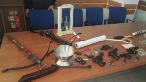 Tale attività investigativa ha permesso infatti di ritrovare un vero e proprio arsenale di armi: 2 balestre, 6 pistole modificate prive di tappo rosso, 1 fucile a piombini, una mazza da baseball in ferro, 3 coltelli, un’ascia e una pistola Beretta calibro 7,65 detenuta illegalmente.