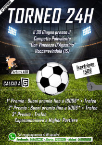 ROCCARAVINDOLA – Dopo il successo dello scorso anno, si ripete il torneo 24h di calcio a 5 di Roccaravindola.