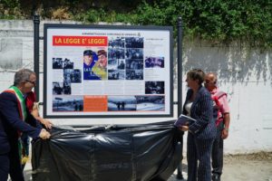 Nella piazza, è stato apposto anche un pannello che ricorda la legge è legge girata a Venafro nel 1958.