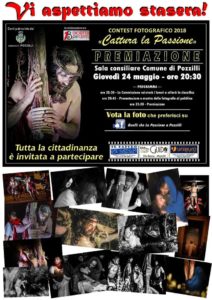 Oggi, 24 maggio, dalle ore 20.30 presso la Sala Consiliare del Comune di Pozzilli sarà possibile vedere tutte le foto scattate durante la manifestazione “Passione 2018” e assistere alla premiazione del vincitore. Una commissione valuterà i lavori e stilerà una classifica, le foto saranno premiate con stupende sculture realizzate da Eugenio di Meo.