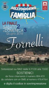 Partecipano al programma di Rai2 «Mezzogiorno in famiglia»: l’ascesa della squadra di Fornelli è stata costante, dalle fasi eliminatorie fino alla finale. L’appuntamento pertanto è sabato 2 e domenica 3 in diretta dalle 11 alle 13 sia dagli studi di Roma sia dalla Piazza di Fornelli, alla presenza del pubblico. Il sindaco Giovanni Tedeschi invita i comuni, a partecipare in piazza e a televotare da casa.