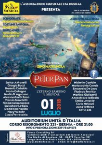 ISERNIA – L’Associazione Culturale Cta Musical di Venafro presenta, con il patrocinio del Comune di Isernia, “Peter Pan, l’eterno bambino – il Musical”.