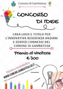 GAMBATESA – Il Comune di Gambatesa ha bandito un concorso di idee mirato alla creazione di un logo e di un titolo per l’innovativa residenza anziani e servizi connessi che verrà istituita in paese grazie all’ottenimento di un finanziamento pari a 2 milioni di Euro.