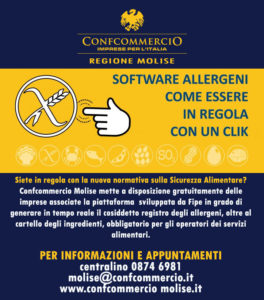 Confcommercio Molise ricordando l’obbligo, a carico degli esercenti, di informare correttamente i consumatori della presenza, negli alimenti somministrati, di sostanze che provocano allergie o intolleranze, mette a disposizione gratuitamente alle imprese associate una nuova piattaforma che consente di assolvere agli adempimenti previsti dalla normativa sugli allergeni.