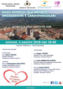 La Giornata dell’anziano è un appuntamento fisso dell’estate rocchese che attira persone anche dai centri vicini. Il tema di quest’anno è “nuovi approcci alle malattie oncologiche e cardiovascolari”. L’evento è organizzato dal Comune, dalla Fondazione “Giovanni Paolo II” e dal Centro Sociale Anziani in collaborazione con la Fondazione “Il Cuore delle Donne”.