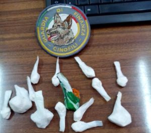 Sul fronte del contrasto ai traffici illeciti delle sostanze stupefacenti, nell’ambito del quale sono state impiegate le unità cinofile presenti alla Sede, i militari hanno controllato oltre 1.200 automezzi e individuato 57 persone responsabili a vario titolo di condotte illecite, delle quali 38 segnalate alle competenti Autorità Prefettizie, una posta in stato di arresto per traffico di stupefacenti (con connesso sequestro di oltre 1,1 chilogrammi di cocaina e circa venti grammi della pericolosa sostanza stupefacente denominata “Kobret”) ed altre 18 denunciate a piede libero alla competente Autorità Giudiziaria in quanto responsabili di condotte illecite legate al mercato dell’eroina (per un totale sequestrato pari a gr. 37), l’hashish e la marijuana (per un totale sequestrato pari a gr. 90).