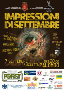 EVENTO – Tutto pronto per “Impressioni di settembre”, il Festival Progressive del Molise organizzato da “BradipHouse Opificio Musicale”, in collaborazione con lo “Zeppelin Pub” e con il patrocinio del Comune di Campobasso.