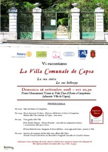Alle ore 11.15, è prevista una visita guidata all’interno della Villa insieme al prof. Michele Paduano, dottore Forestale, che parlerà della sua composizione botanica e delle specie arboree, e alla prof.ssa Giulia Severino, insegnante di storia dell’arte, che spiegherà gli arredi urbani presenti nella Villa.