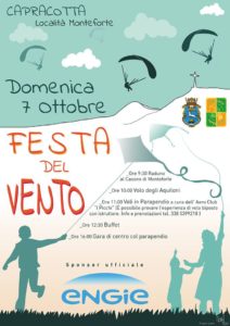 Domenica 7, al parco eolico di Monteforte, si terrà la Festa del Vento, organizzata dalla Pro Loco con il supporto di Engie, la società che gestisce il parco eolico. Si inizia con il raduno alle 9.30, per proseguire con il volo degli aquiloni e con la possibilità di provare l’ebrezza di un volo in parapendio, grazie alla collaborazione dell’Aero Club “I Picchi”. Dopo il buffet, nel pomeriggio spazio alle gare di centro col parapendio.