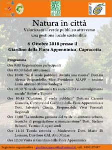 Si comincia sabato 6 presso il Giardino della Flora Appenninica dove, alle ore 9, si terrà il convegno “La natura in città”, organizzato in collaborazione con il Consorzio e l’Associazione Italiana Architettura del Paesaggio. Scopo principale dell’iniziativa è quello di valorizzare il verde pubblico anche dei piccoli centri abitati, sarà l’occasione per riflettere soprattutto sulla nuova figura professionale introdotta dalla legge 10 del 2013, quella del manutentore del verde pubblico.
