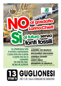 GUGLIONESI – Un incontro promosso dal Comitato “I Discoli del Sinarca” e da Legambiente, durante il quale saranno illustrate le problematiche connesse alla realizzazione del metanodotto Larino – Chieti.