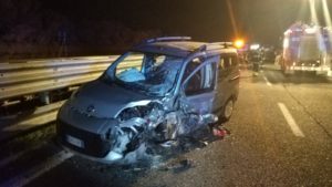 Pare che un Doblò abbia imboccato la variante contromano impattando violentemente con una Alfa Romeo Giulietta.