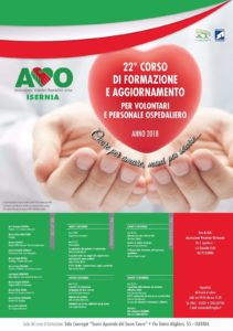 La sezione di Isernia ha organizzato il 22° Corso di formazione e aggiornamento per volontari e personale ospedaliero, che prenderà il via lunedì prossimo 5 novembre 2018 alle ore 15,15 nella sala convegni ‘Suore Apostole del Sacro Cuore’ in via Dante Alighieri n° 55 a Isernia (ingresso di fronte liceo artistico).