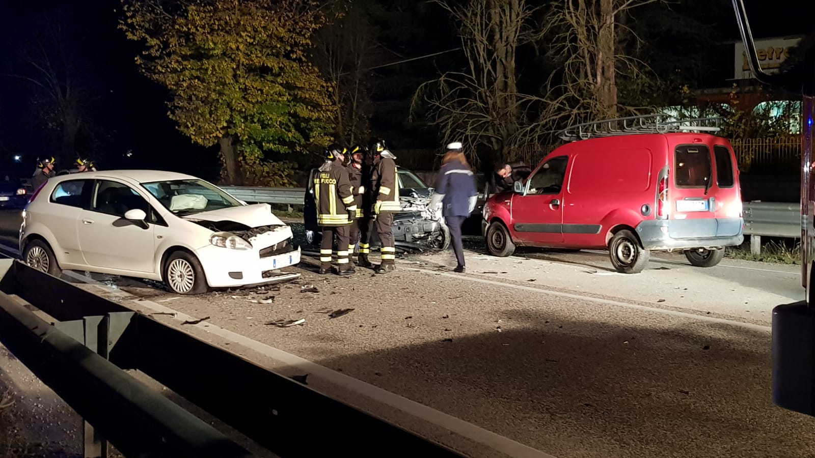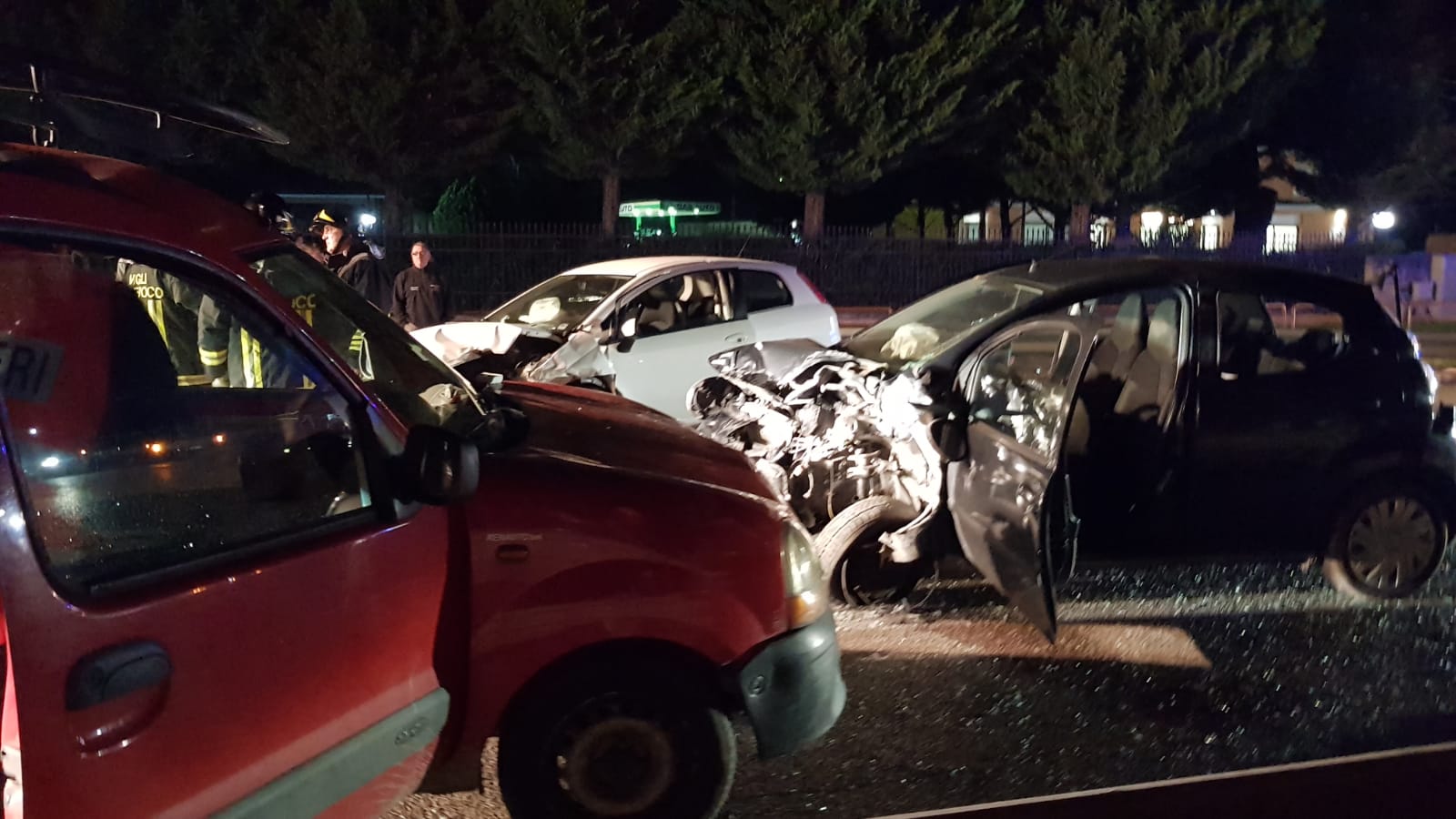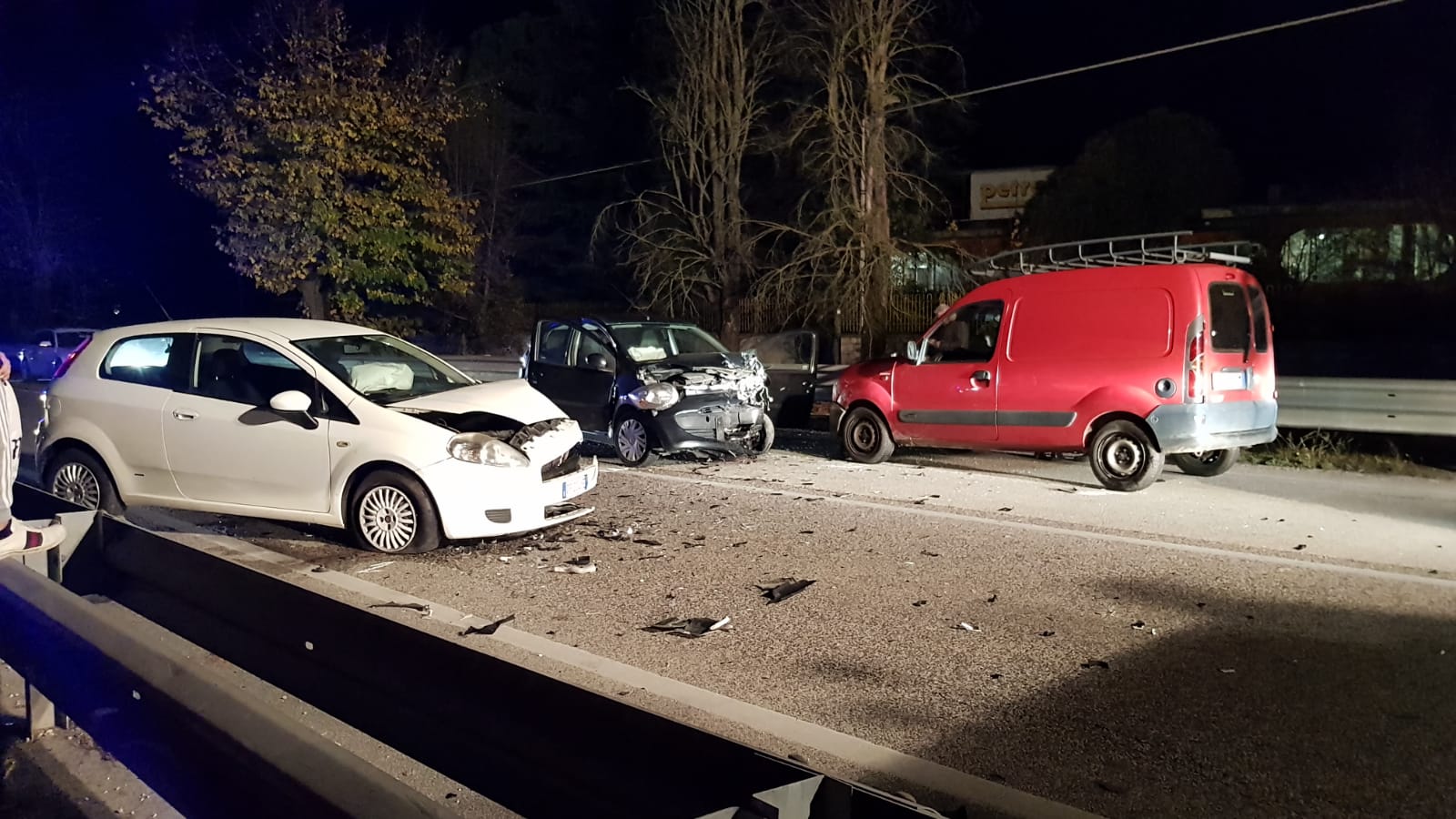 Tre i veicoli coinvolti, una Fiat punto bianca una Citroen C1 grigio antracite e un Renault Kangoo rosso.