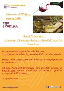 Giovedì 22, infatti, il mercato di via Insorti d’Ungheria dedicherà la giornata all’olio ed al vino novello. Due prodotti tipicamente autunnali, mediante i quali Campagna Amica Molise vuole riproporre le antiche tradizioni contadine delle nostre terre quando l’assaggio dell’olio appena uscito dal frantoio ed il vino ancora profumato di mosto costituiva una festa per tutta la comunità anziana e la famiglia.
